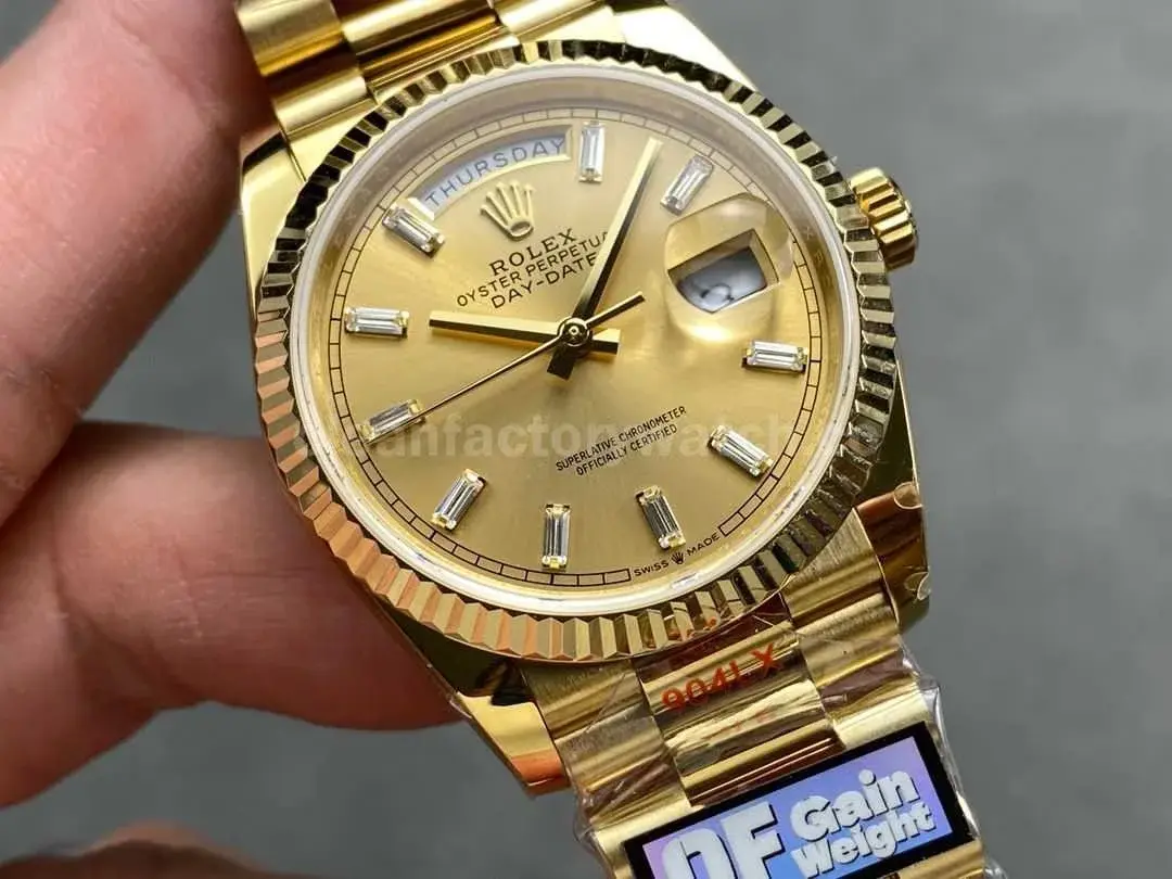 This QF Factory Rolex Day-Date replica strives for accuracy in weight, size, and functionality while offering gold-plating customization options. It is an excellent choice for consumers looking for a high-quality, cost-effective alternative with a timeless design.