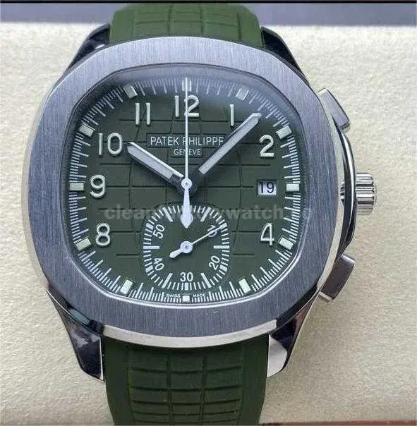 3K Factory Patek Philippe Aquanaut 5968g-010 42mm White Gold Green Rubber Strap Arabic Numerals Green Dial