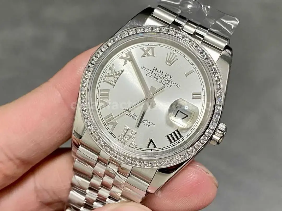 A+ Factory Rolex Datejust 126284RBR-0021 36mm Diamond Bezel Full 904L Roman Numerals&Diamond Silver Dial Jubilee