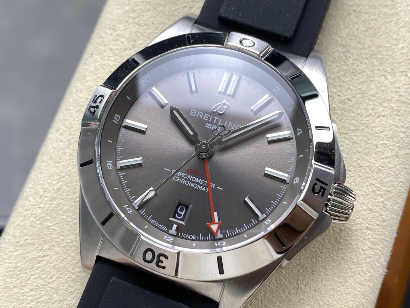 Sunburst anthracite dial with red-tipped GMT hand for second time zone