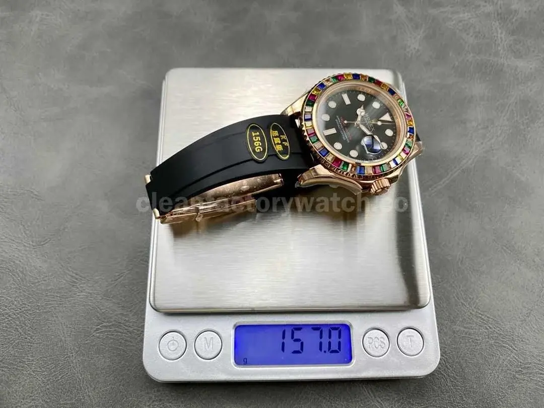 Introducing the first-ever God-Tier Clone Yacht-Master Full-Weight Edition a revolutionary creation that pushes the boundaries of craftsmanship and redefines material innovation. Traditional stainless steel watches on the market typically have a density of 8, while weighted versions reach 12.5, and official K gold stands at 16.5. However, we have successfully developed a special alloy that rivals the density of K gold, achieving a level of weight and texture almost indistinguishable from the official K gold case.