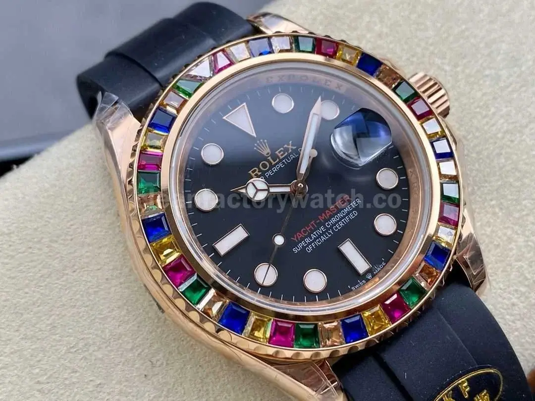 KF Factory Rolex Yacht-Master 116695SATS 40mm Rose Gold Rubber Strap Black Dial