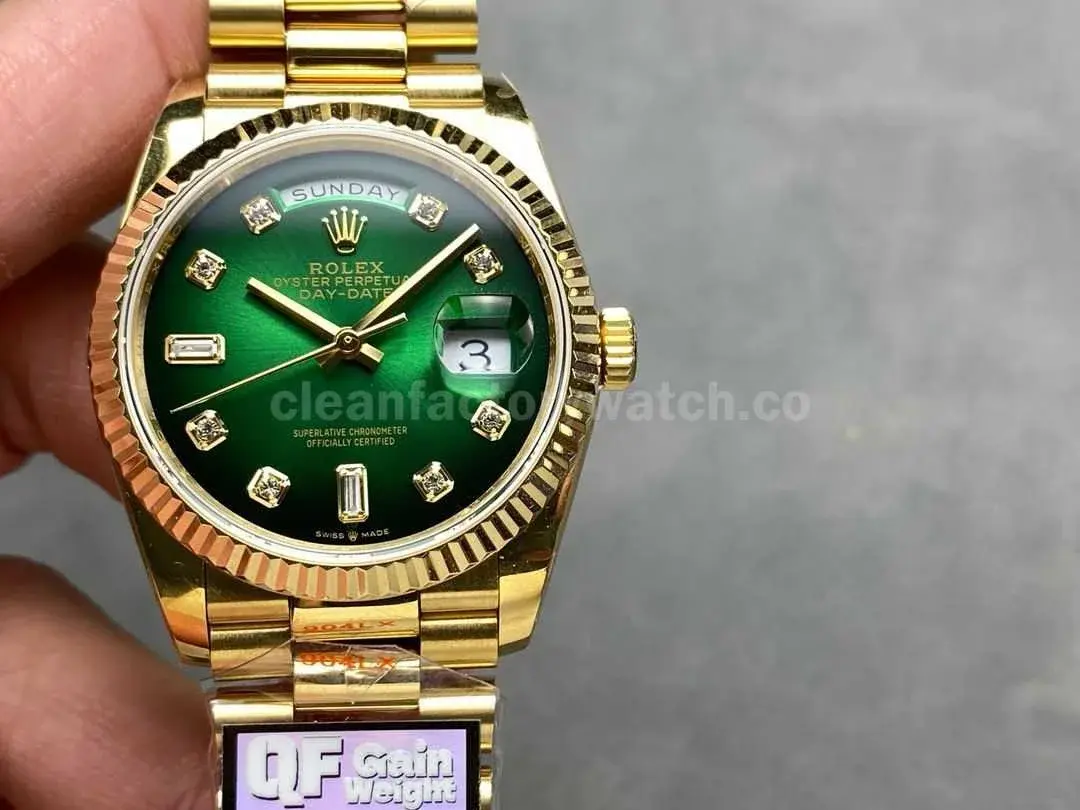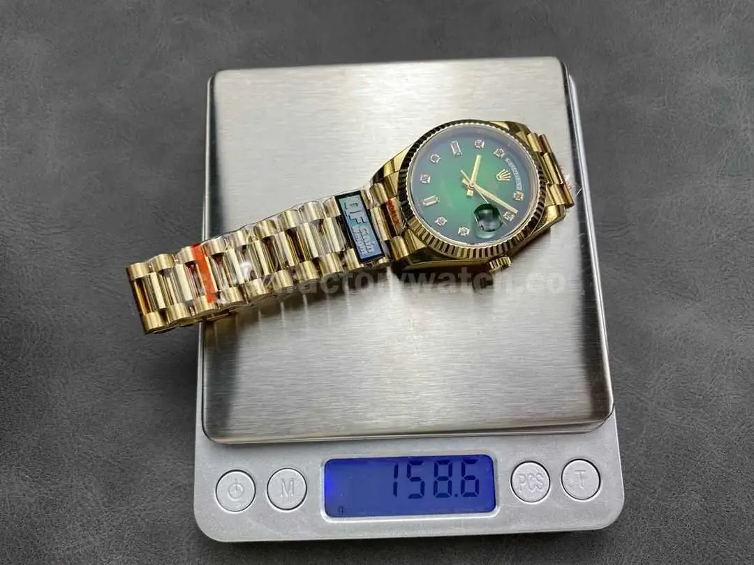This QF Factory Rolex Day-Date replica strives for accuracy in weight, size, and functionality while offering gold-plating customization options. It is an excellent choice for consumers looking for a high-quality, cost-effective alternative with a timeless design.