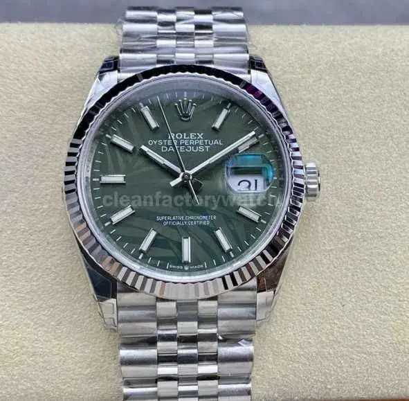 VS Factory Rolex Datejust 126234-0047 36mm Full 904L Olive Green Palm Motif Dial Jubilee