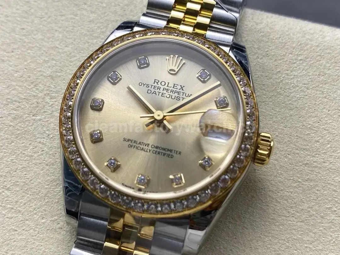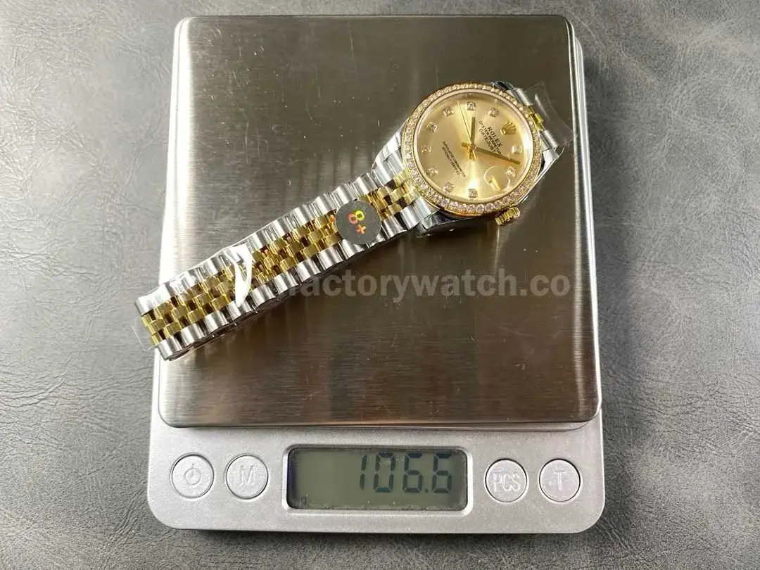 8+ Factory Rolex counterweight Datejust 278383RBR-0026 31mm Diamond Yellow Gold Bezel Half Yellow Gold Diamond Champagne Dial Jubilee