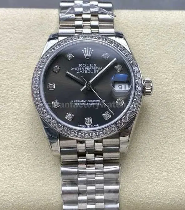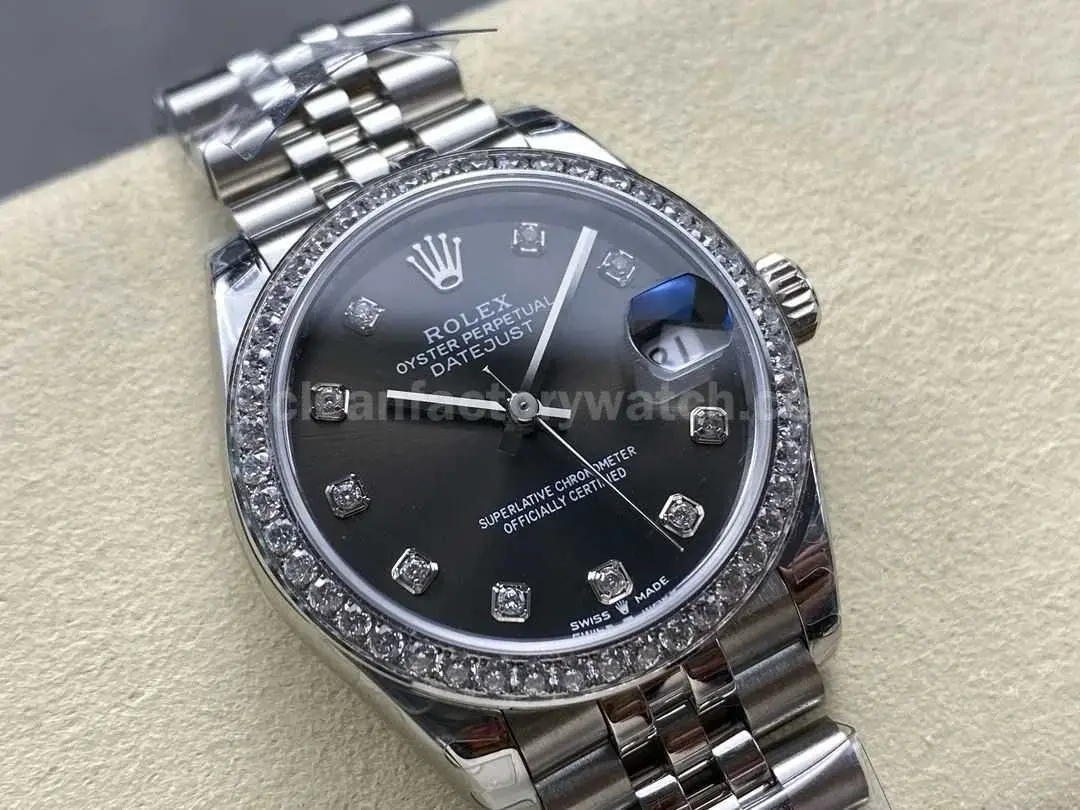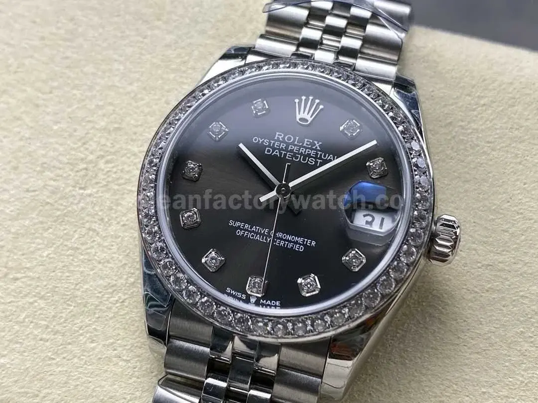 8+ Factory Rolex counterweight Datejust 278384RBR-0010 31mm Diamond White Gold Bezel Full 904L Diamond Grey Dial Jubilee