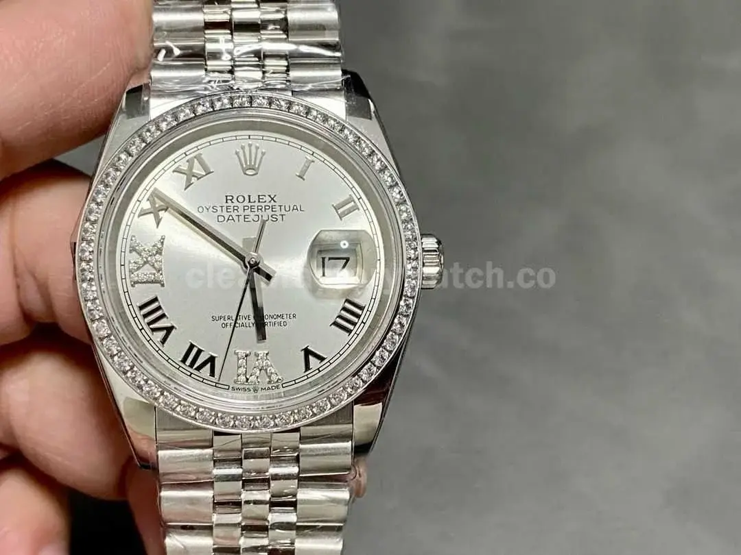 A+ Factory Rolex Datejust 126284RBR-0021 36mm Diamond Bezel Full 904L Roman Numerals&Diamond Silver Dial Jubilee
