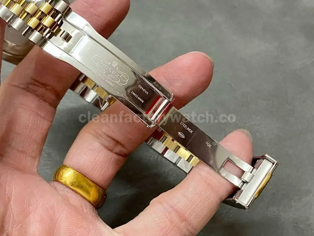 The case is made from 904L stainless steel, a highly corrosion-resistant material known for its excellent durability and unique fine luster. The 36mm case size is a timeless classic, making it perfect for daily wear without being overly conspicuous. The case lines are smooth, and the connection between the lugs and bracelet is seamless, showcasing GM Factory’s dedication to precision. The bracelet follows the classic Oyster three-link design, offering both comfort and a secure fit. The texture and shine of the 904L steel are nearly identical to the original.