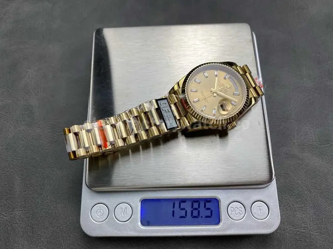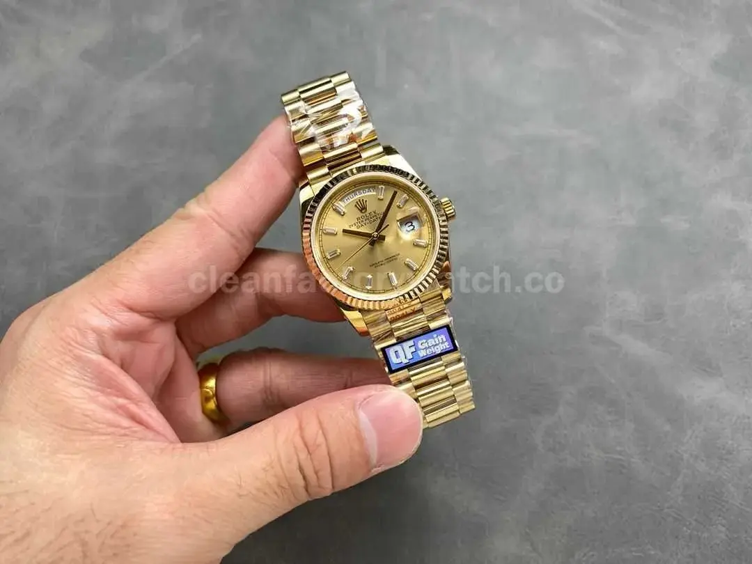 This QF Factory Rolex Day-Date replica strives for accuracy in weight, size, and functionality while offering gold-plating customization options. It is an excellent choice for consumers looking for a high-quality, cost-effective alternative with a timeless design.