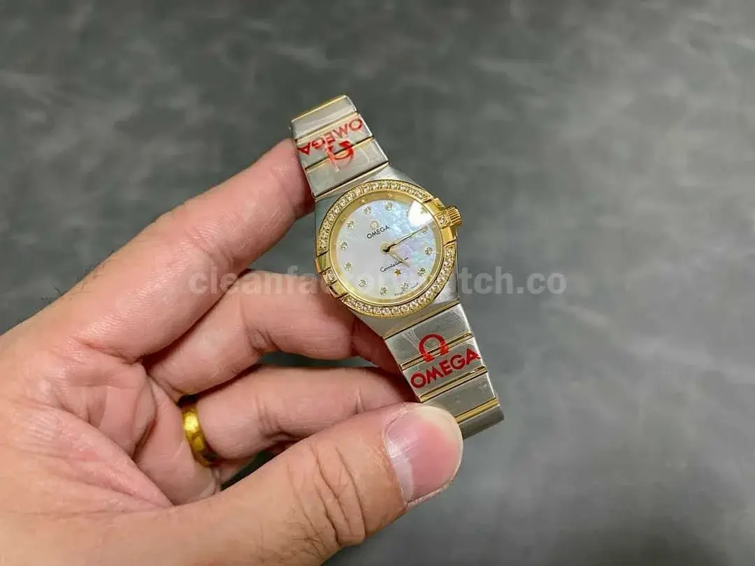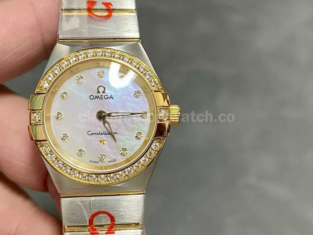 TW Factory Omega Constellation Quartz 123.20.27.60.55.002 27mm Diamond&Gold Bezel Half Gold&Steel Mother Of Pearl Diamond Dial