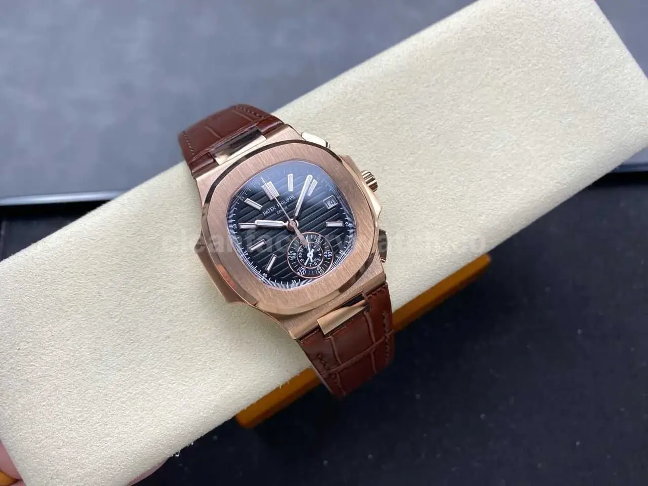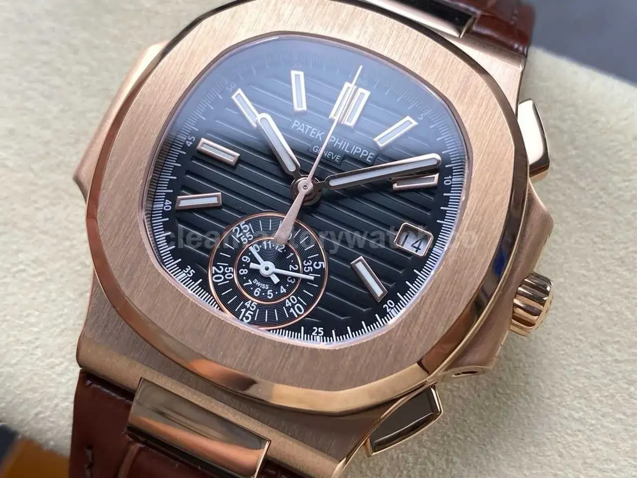 3K Factory Patek Philippe Nautilus 5980/1R-001 Leather Strap Rose Gold Black Dial