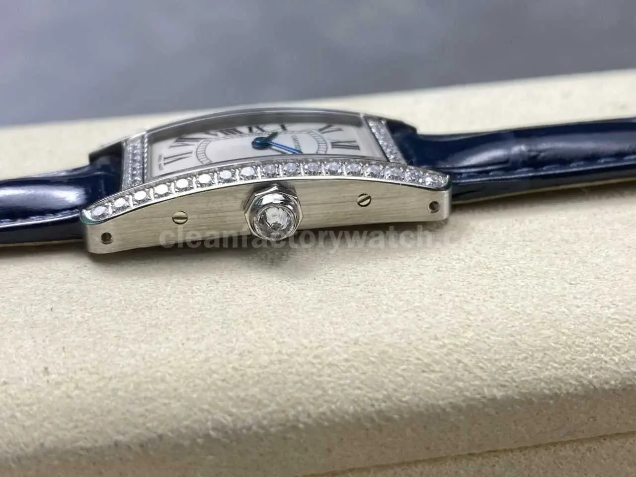 8848 Factory Cartier Tank Américaine 19mm Diamond Bezel Roman Numerals Silver Dial