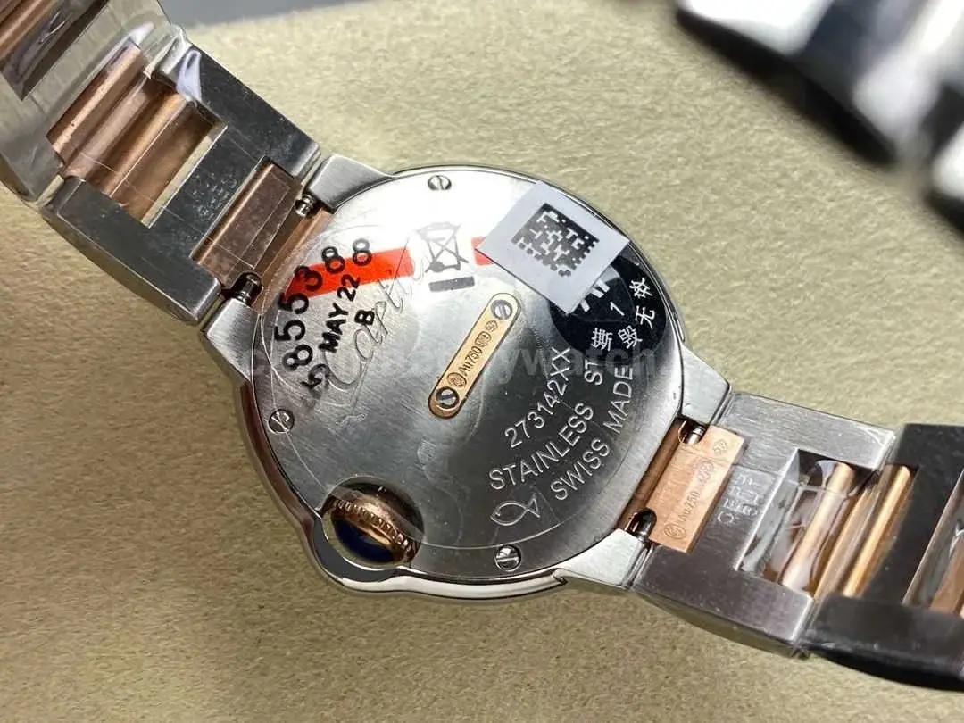 A notable improvement is the upgraded hand axis size, which has been precisely adjusted to fit original Cartier hands. This breakthrough allows the replica watch to achieve the same visual effect as the genuine model, significantly enhancing authenticity.