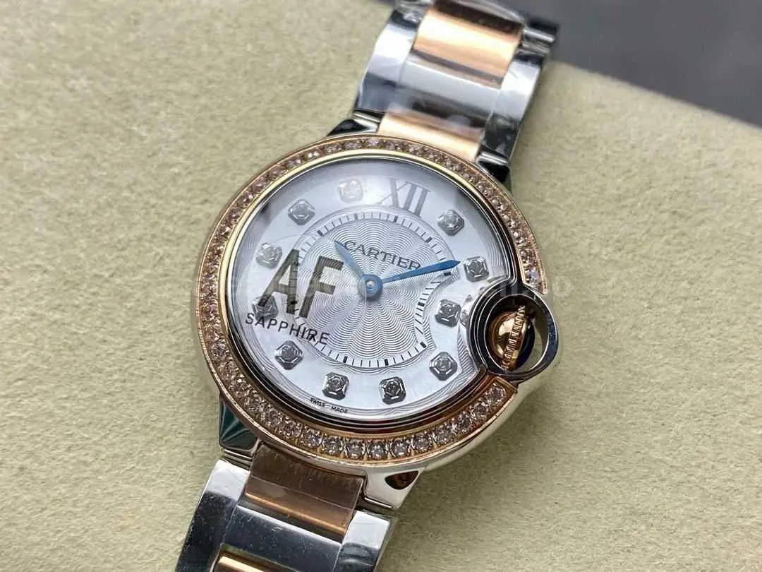 AF Factory Cartier Ballon Bleu W3BB0025 28mm Diamond Bezel Rose GoldSteel Roman Numerals&Diamond Silver Dial