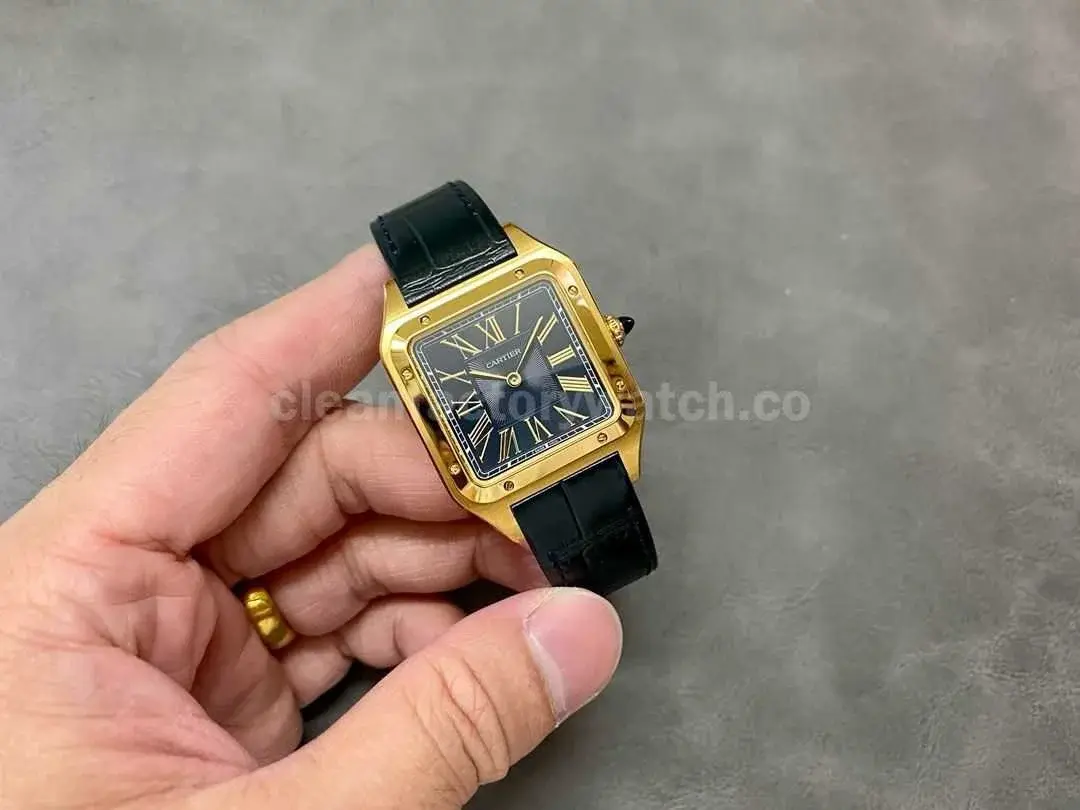 F1 Factory Cartier Santos Dumont WGSA0077 31.4mm Yellow Gold Leather Strap Roman Numerals Black Dial