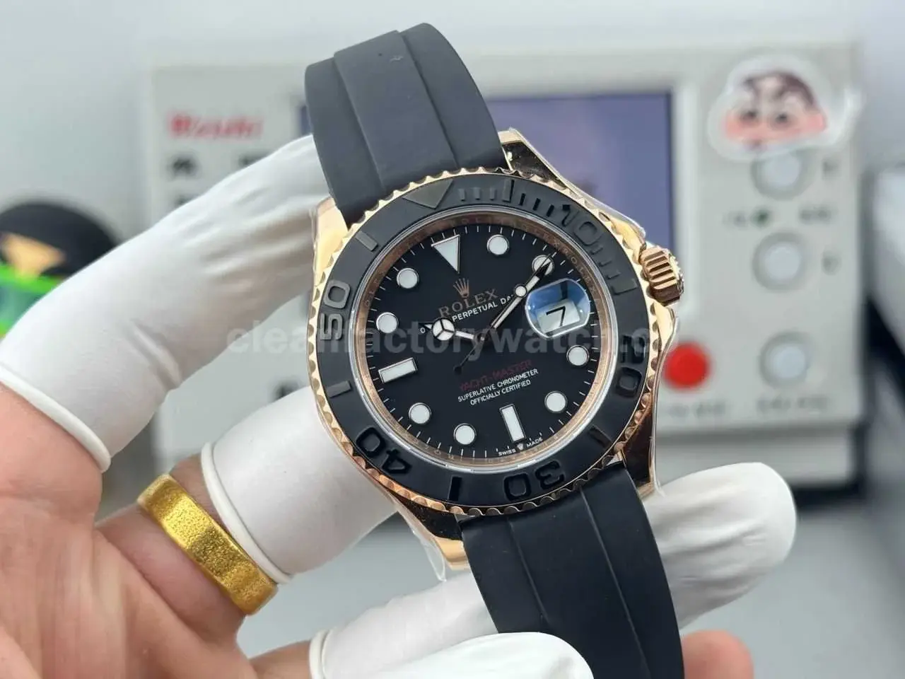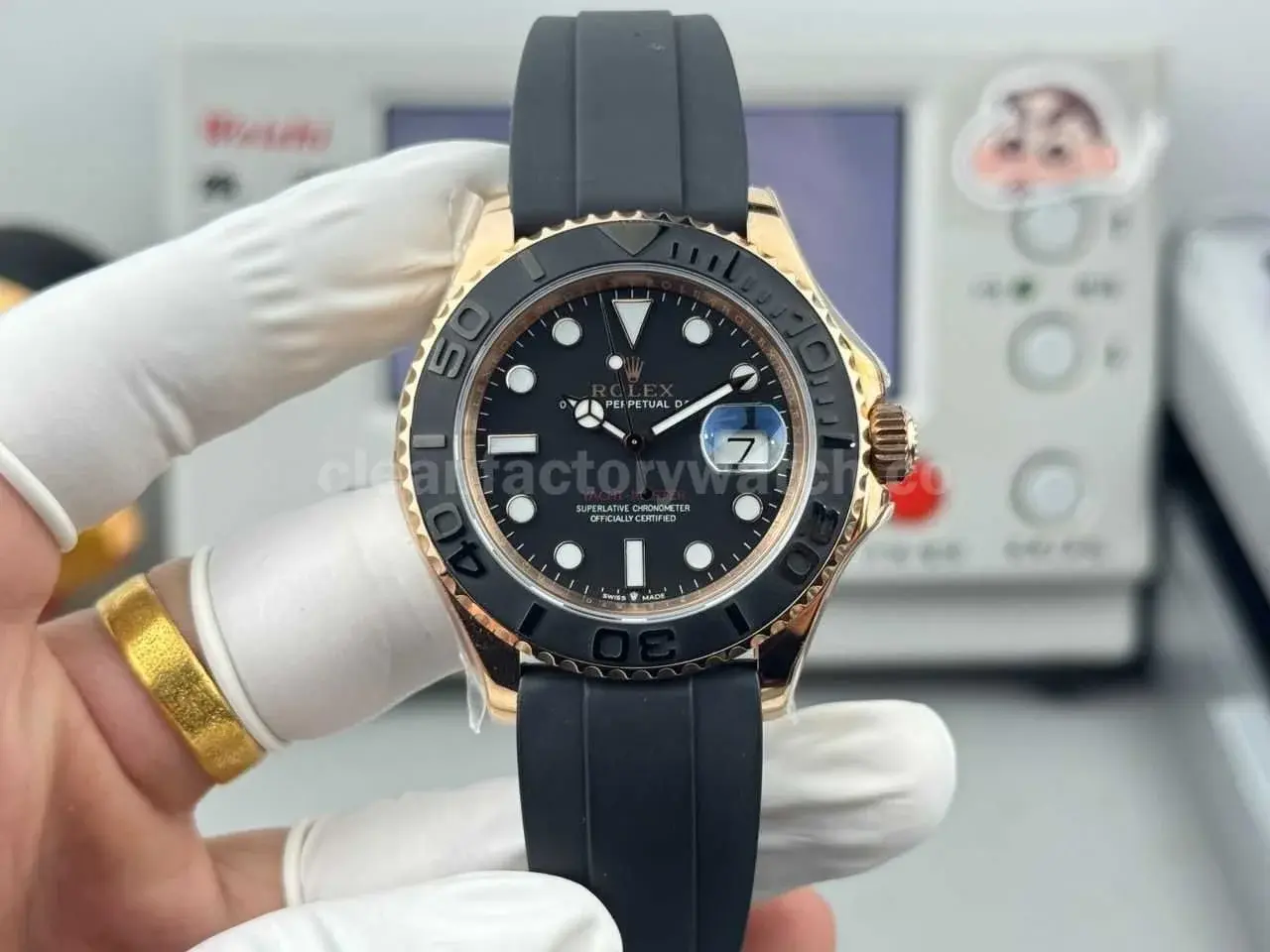 FH Factory Counterweight Rolex Yacht-Master 126655-0002 40mm Rose Gold Oysterflex Black Dial