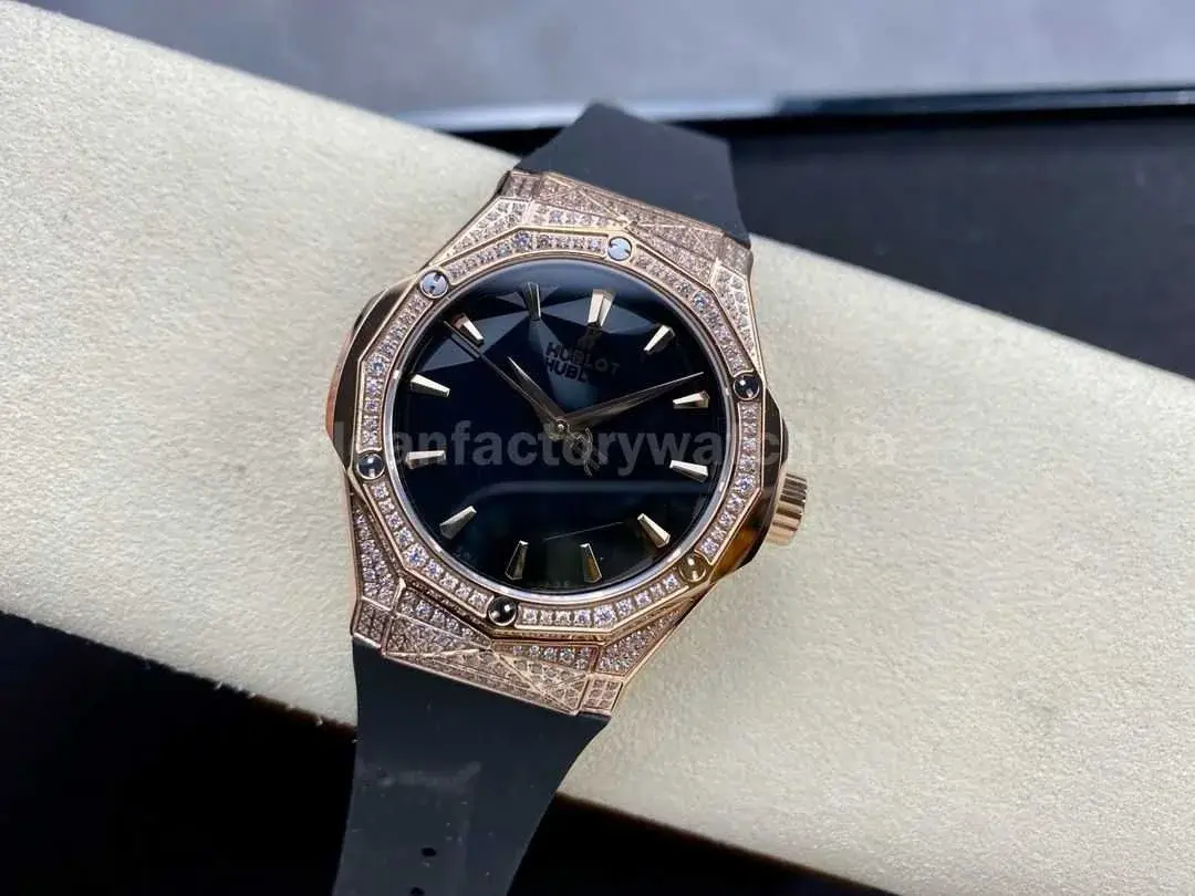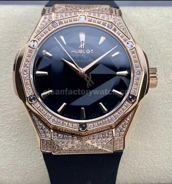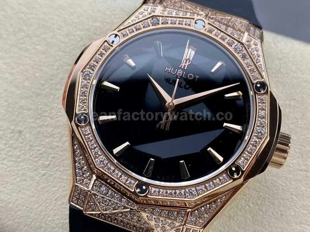 HB Factory Hublot Classic Fusion 550.OS.1800.RX.1604.ORL19 40mm Diamond Rose Gold Black Rubber Strap Black Dial
