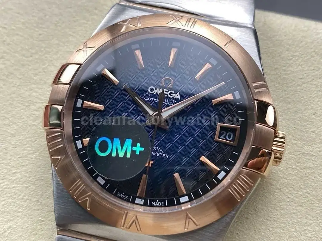 OM+ Factory Omega Constellation Men 123.20.38.21.03.001 38mm Rose Gold/Steel Blue Dial